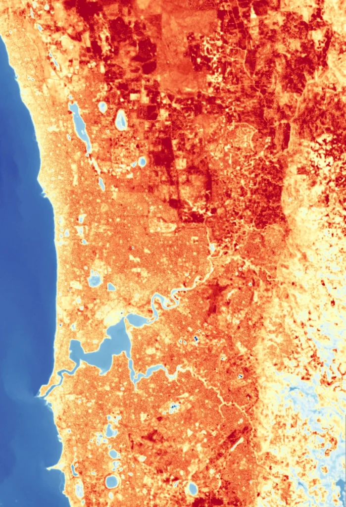 Land Surface Temperature is determined by considering a timeseries of thermal data. Land Surface Temperature can indicate areas which have undergone land use changes, identify heat islands in urban areas and show climatic patterns for broadscale areas.